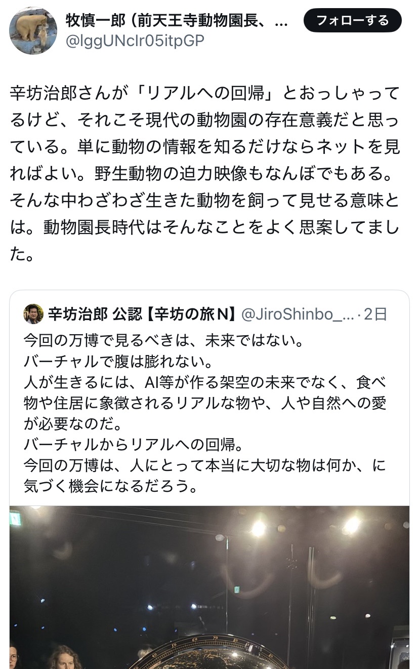 いや多分、行ったら絶対楽しいと思いますよ。万博ってフォーマットは超贅沢なものなので、開催しちゃったんなら行かないのは勿体無いです。問題は成熟国では『コスパ』的な意味で合わなくなってきてるという事ですね。既に開発が進んだ都市ではわざわざ大規模再開発しないで、その金の分大学の研究室につけてあげたほうが、みたいな話がこれから問題になってくるのだと思います。 - 105 名前:一般よりも上級の名無しさん 投稿日時:2025/04/18(金) 15:26:03.93 ID:cmB5TA240