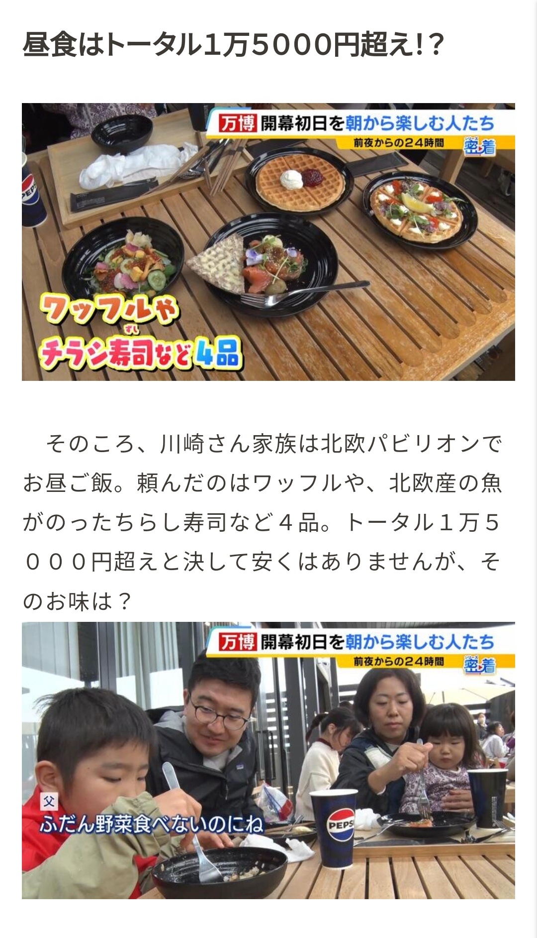万博4人家族、昼飯4品で1万5000円のメニューがこちら