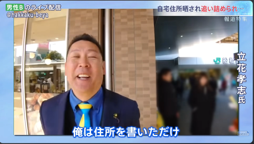 立花孝志「俺、岩井清隆の住所は晒してない。俺は住所を書いただけ」どういうこと?