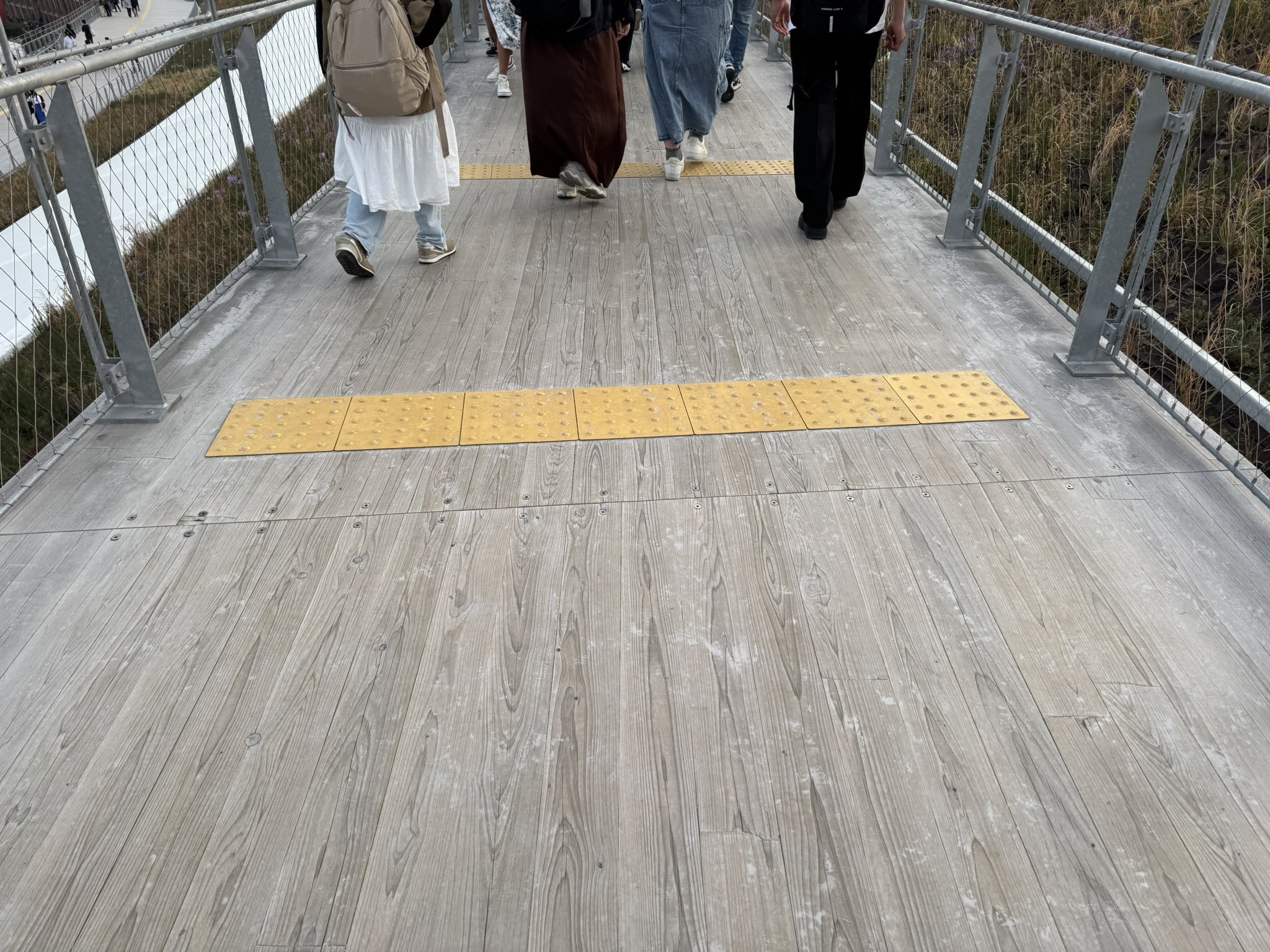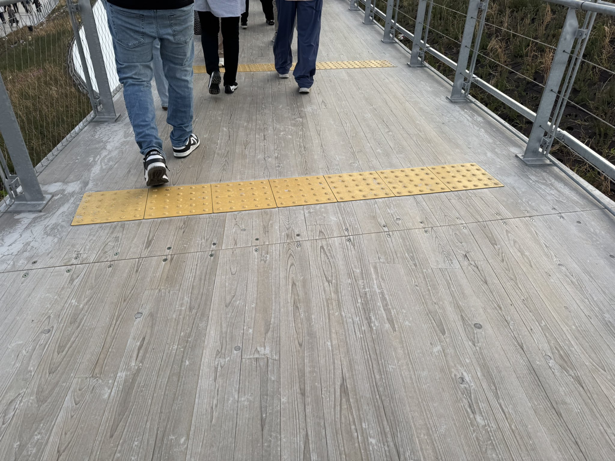 この先スロープなので注意って意味らしいが、その先に点字ブロックが存在しないので目の見えない人はどうなってるかわからないらしい