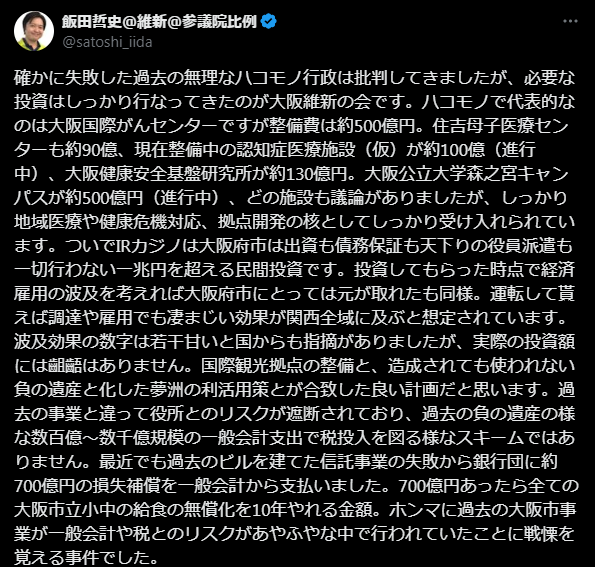ハコモノ批判に惹かれて維新に投票した人は怒らないと - 25 名前:一般よりも上級の名無しさん 投稿日時:2025/04/21(月) 10:45:04.78 ID:RJevd41ud