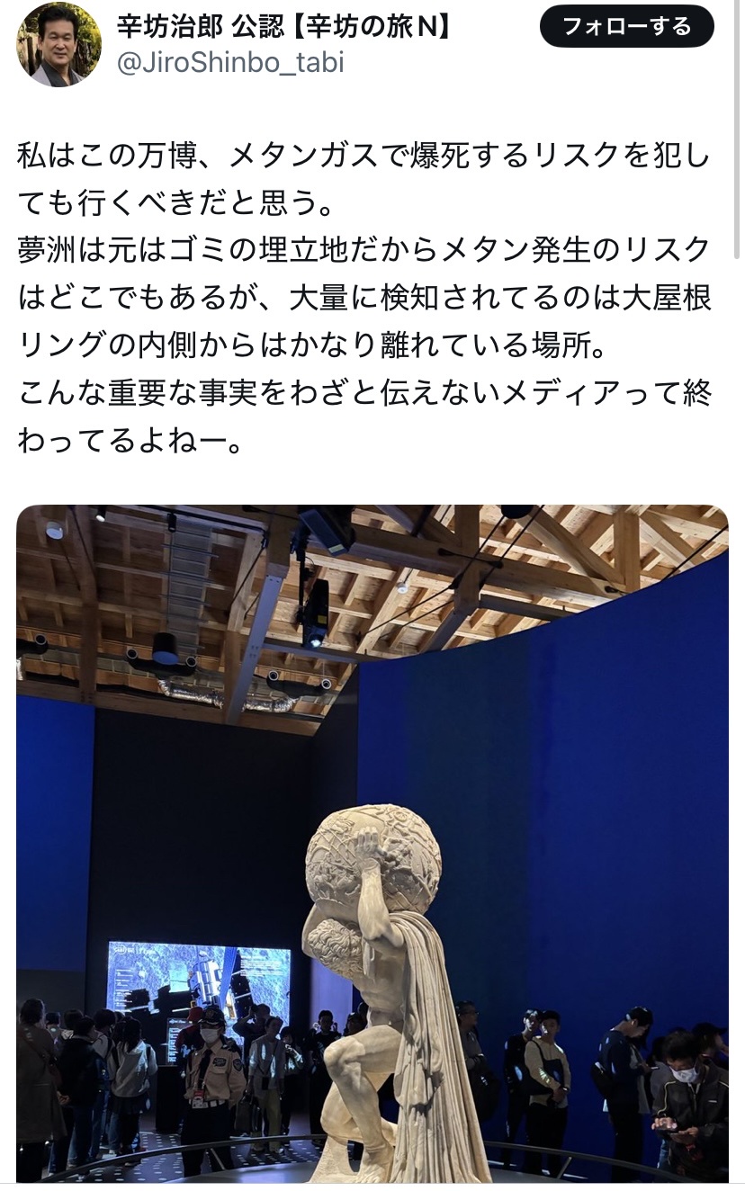 辛坊治郎「万博はメタンガスで死んでも行くべき。」