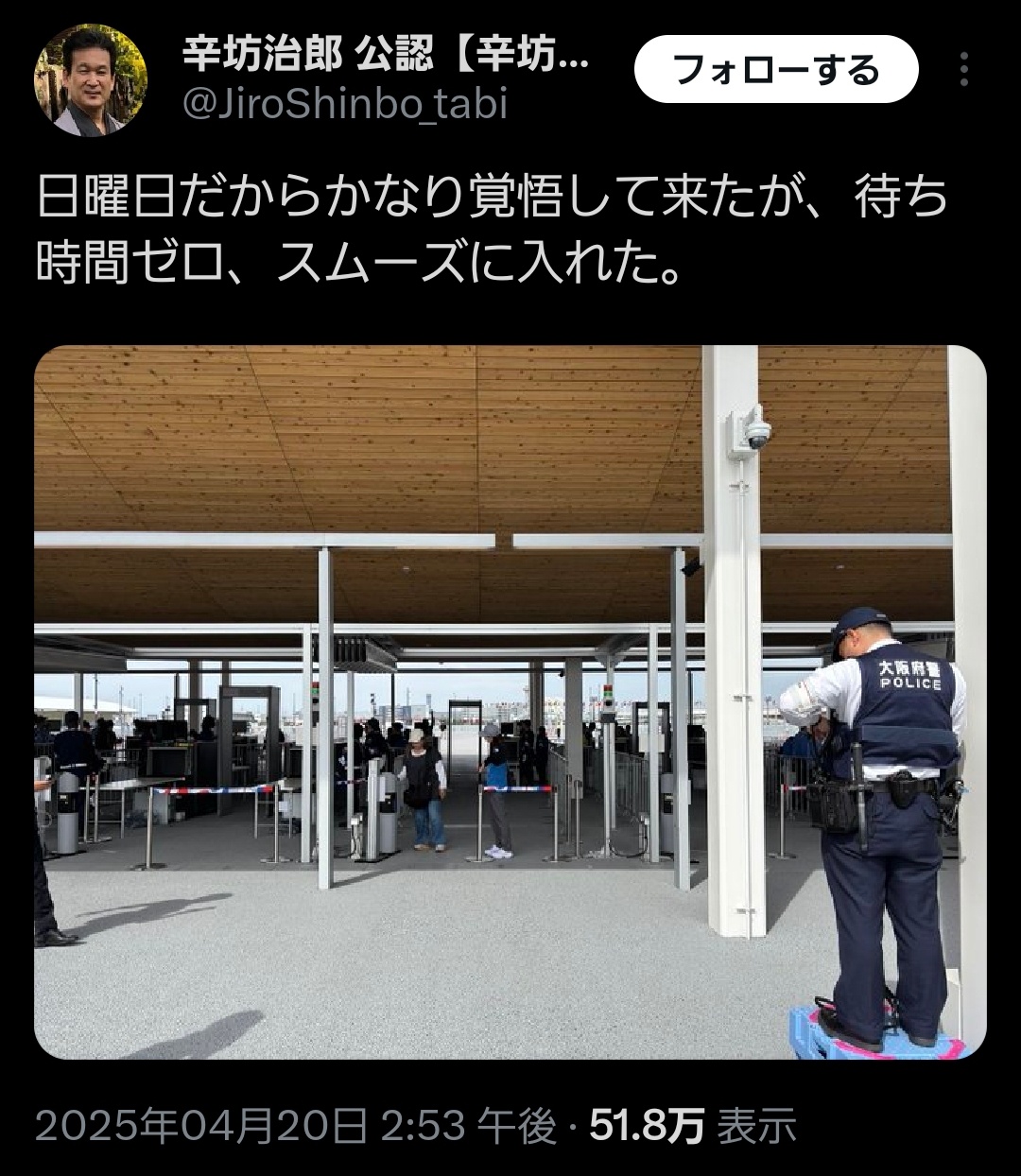 メタンガス辛抱「日曜日なのにガラガラで待ち時間ゼロで入れた😤」こいつ万博反対派か!?😡