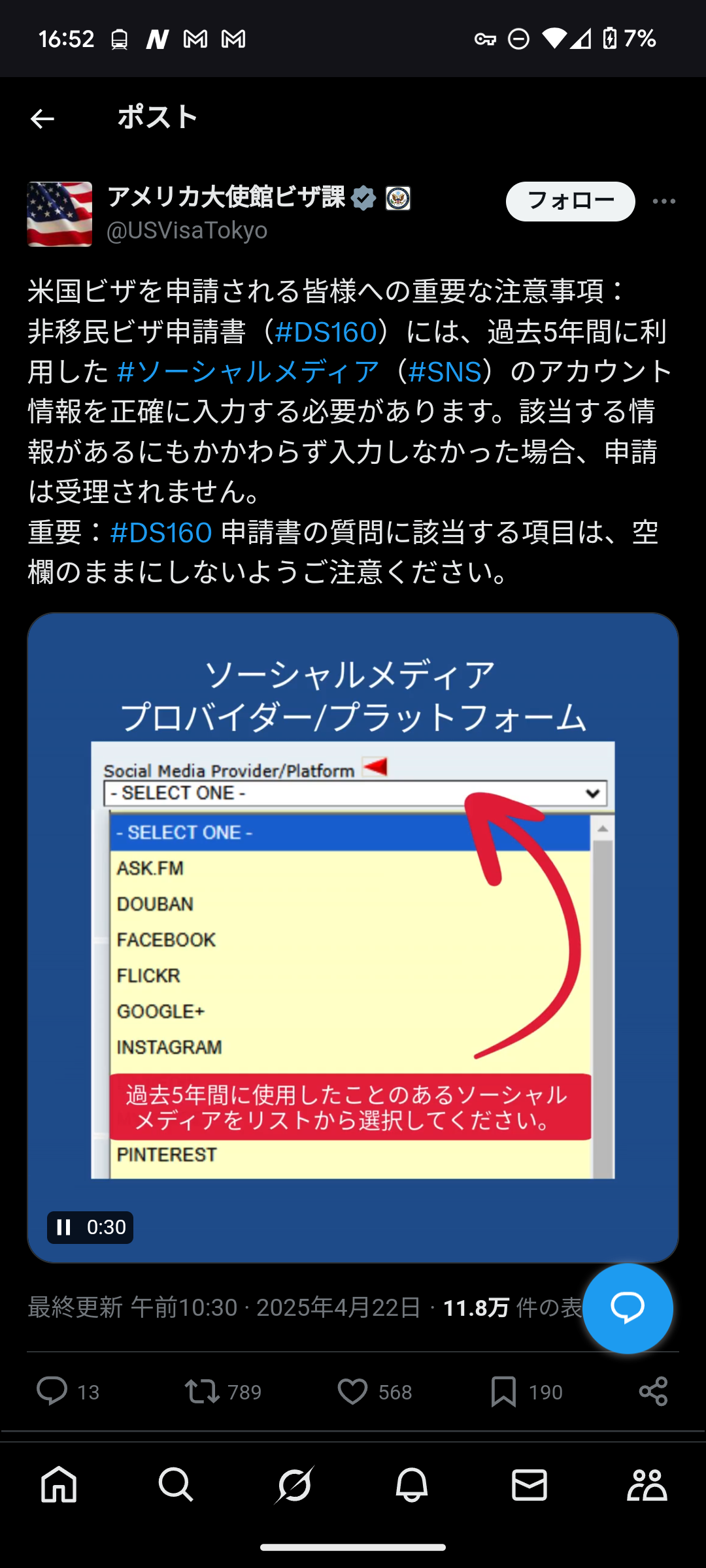 アメリカに申請するのはいいけど出張とかで使う時に会社に見られるのは嫌だな。