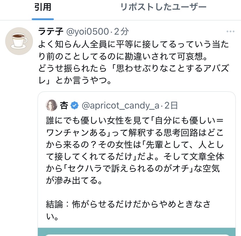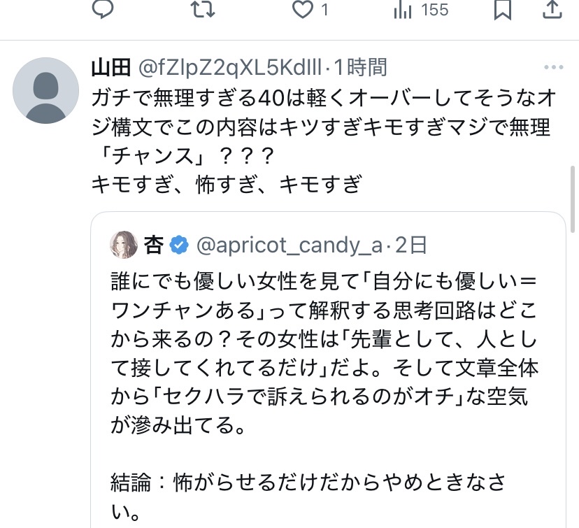 🤓「新卒の女の子が僕に優しくしてくれました。これってミャクありですよね。」→ボコボコに叩かれる