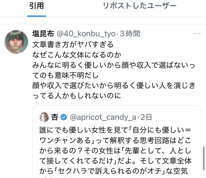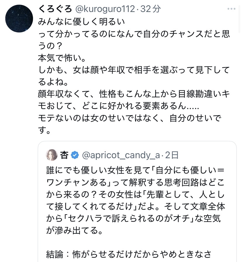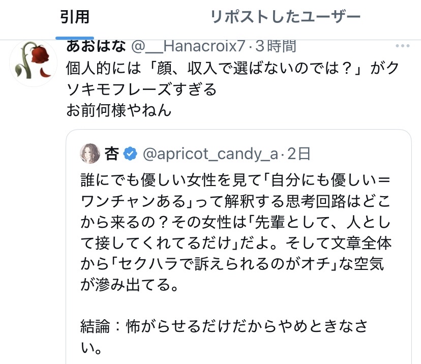 無惨様の男のフリした垢と見せかけた弱男の垢だろこれ