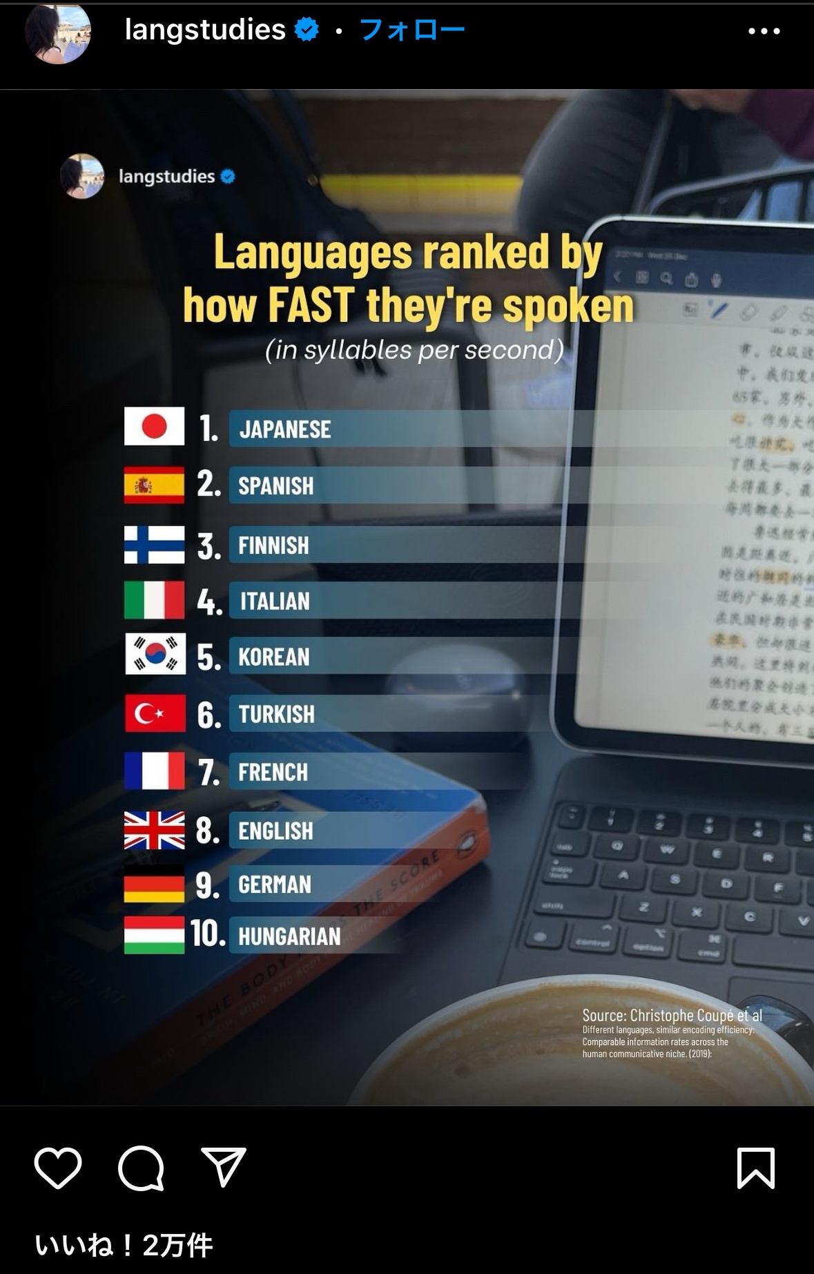 音節は知らんけど、日本語は反応速度がめっちゃ早いってのは聞いたな