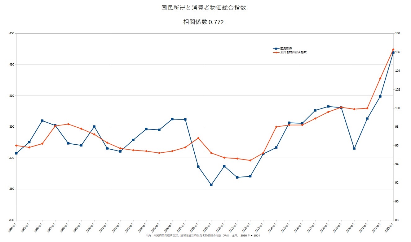 賃金が上がるのは円の相対的購買力が低下し、物価が上がるのは実質的賃金が減少することを意味する。隣国と国際統計の競争をしないことだ。