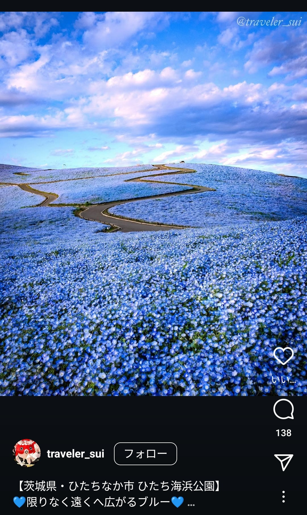 【花見】茨城でネモフィラが満開らしいですよ☺
