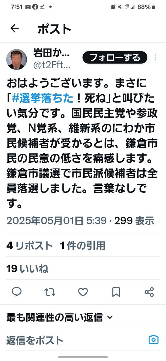 当選しなくてよかったと鎌倉市民は心底思ってるだろうな