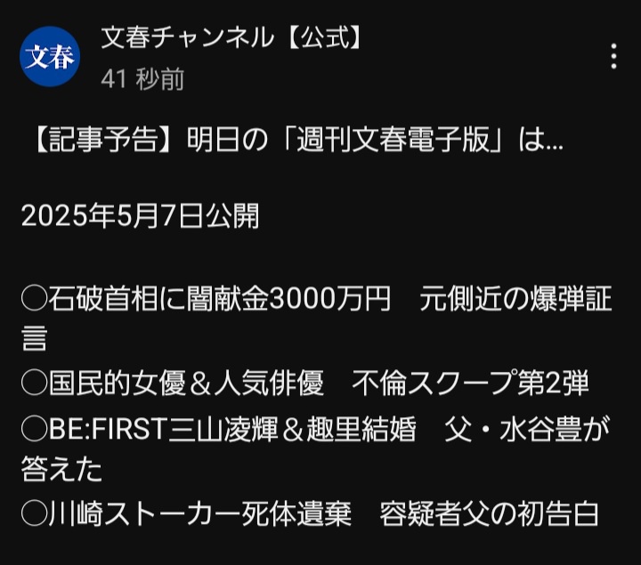 現役総理なら揉み消せる - 73 名前:一般よりも上級の名無しさん 投稿日時:2025/05/06(火) 21:16:54.26 ID:420daw+GH