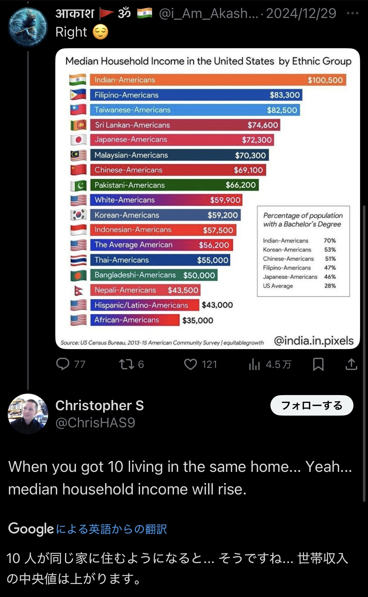 優秀な奴はアメリカ行くしカースト上位は左うちわよ - 76 名前:一般よりも上級の名無しさん 投稿日時:2025/05/08(木) 23:48:25.71 ID:PFHERM4j0