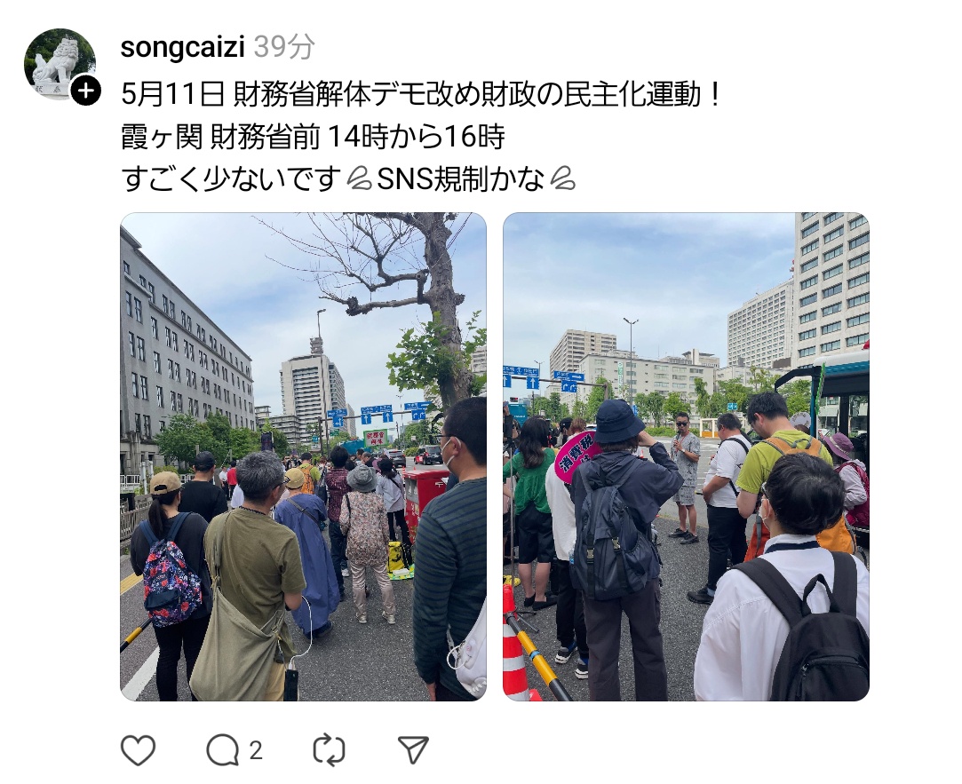 財務省解体デモ、政府のSNS規制により参加者が少なくなってしまう…