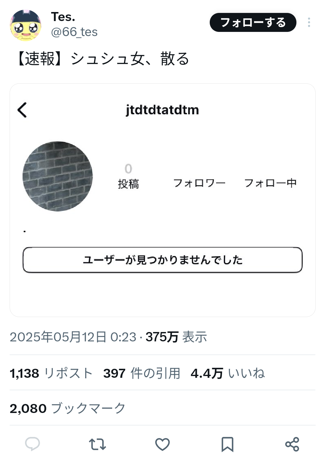 - 4 名前:一般よりも上級の名無しさん 投稿日時:2025/05/12(月) 12:50:12.75 ID:sBE5oW4C0
