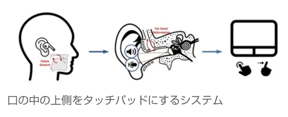 このシステムは口蓋(上あご)をタッチパッドとして、舌をクリッカーとして活用するハンズフリーのイヤフォン操作システムだ。