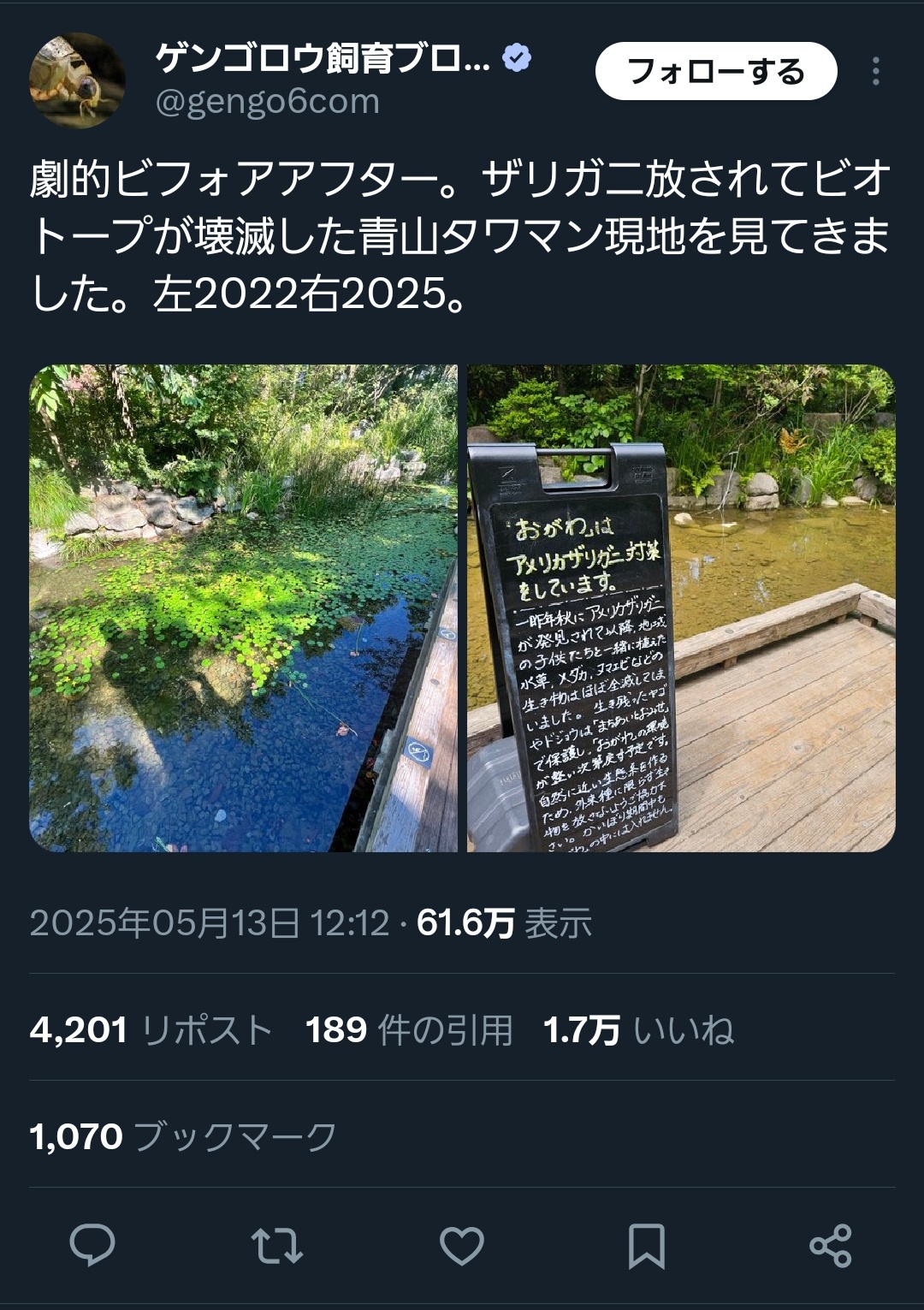 生命力の強いアメリカザリガニだけが生き残ったのが正解 - 76 名前:一般よりも上級の名無しさん 投稿日時:2025/05/13(火) 17:52:03.23 ID:71EUdPpF0