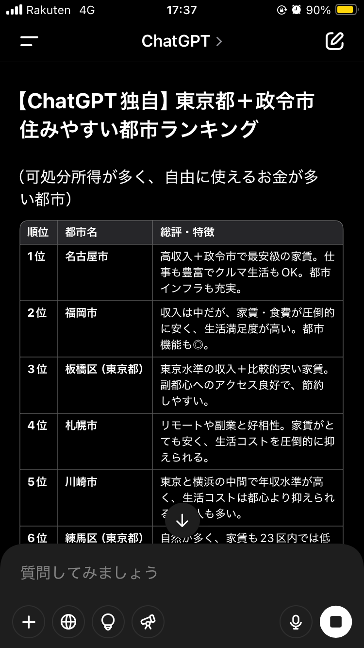 【有益情報】AI🤖「住みやすい大都市ランキングを発表シマス。移住の参考にしてクダサイ」