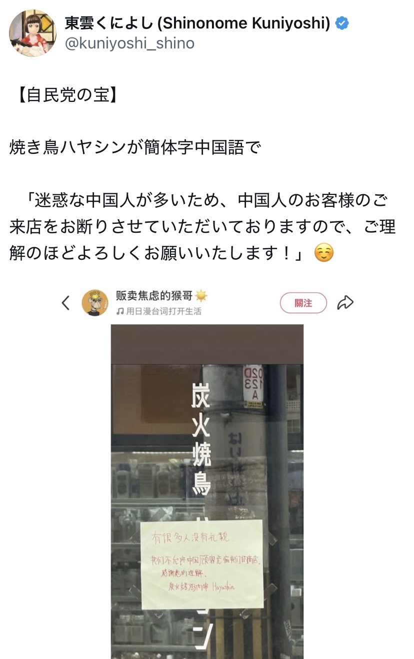 なお日本人と犬は入店お断りの貼り紙をした中国のお店は愛国者と持て囃され盛況の模様