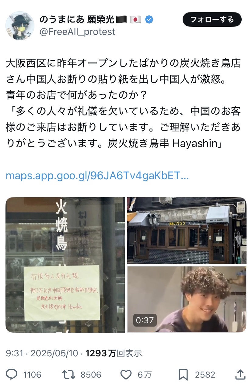 変に中国人とか付けるから - 11 名前:一般よりも上級の名無しさん 投稿日時:2025/05/13(火) 21:12:06.96 ID:W/PJrDen0
