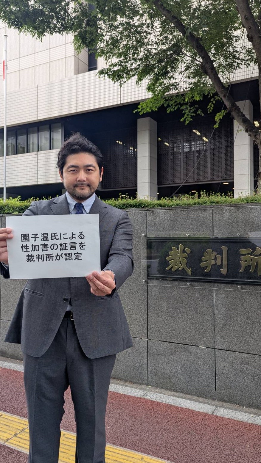 ・園が俳優を目指す新人女優に肉体関係を持ちかけ、映画に出演させていたのは事実と認定今回の裁判が始まる前、私は「この裁判を通し、園による長年の性加害を裁判所に認めさせることが目的です」と公言していましたが、私の当初の目的通り、裁判所が園子温から被害を受けた方々の証言を事実と認定する内容でした。ですので私は胸を張って「園子温に勝った」と断言できます!勇気を持って証言をしてくださった皆さま、本当に感謝を申し上げます。