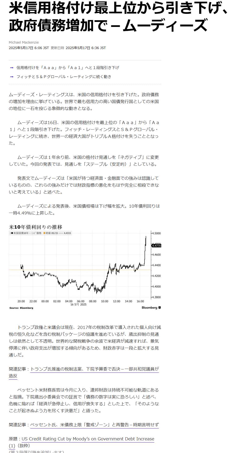 YouTuberが昨日の夜10時位にチャートみて、あれこれ急落する感じだな。何かニュース出るかもと言ってたがこれのことか - 26 名前:一般よりも上級の名無しさん 投稿日時:2025/05/17(土) 07:15:12.71 ID:IApJAiv90
