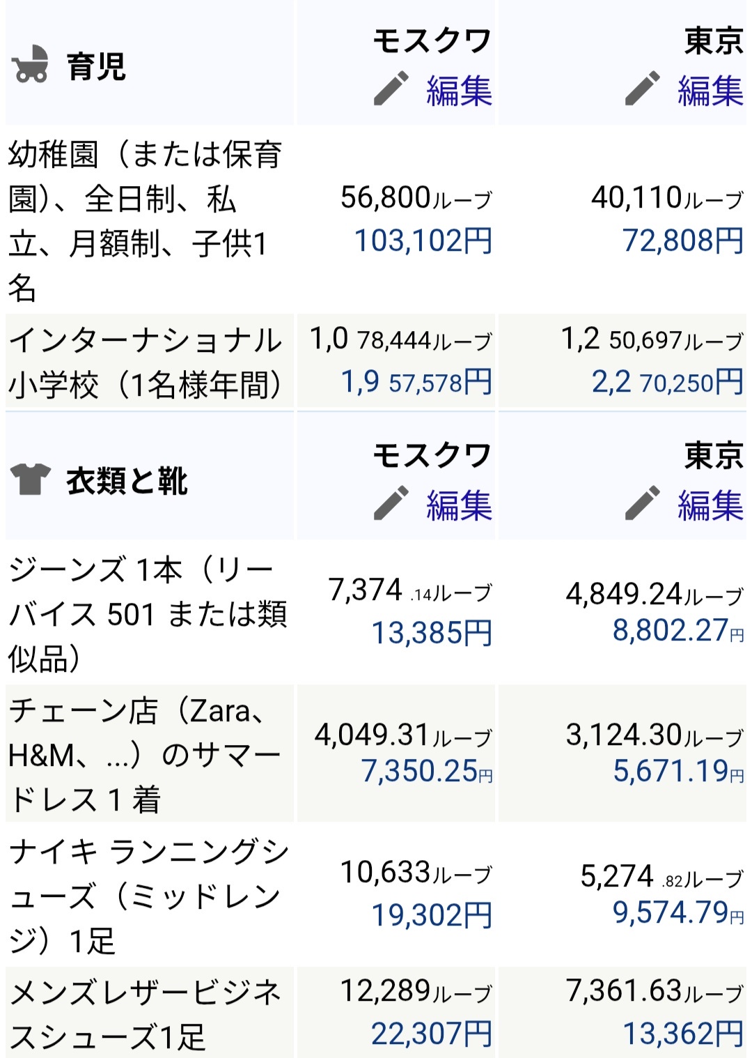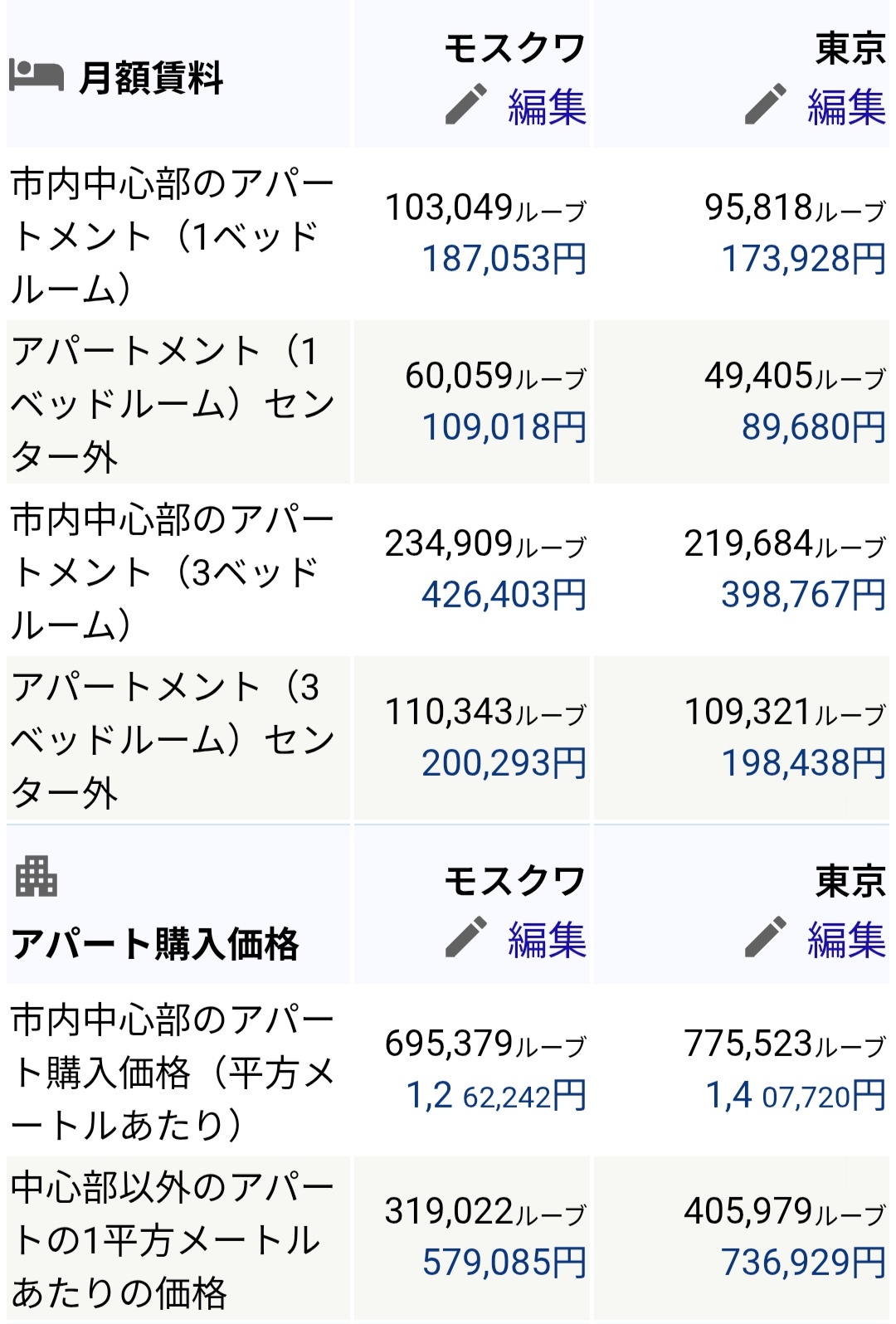 モスクワって平均年収100万ぐらいなのによく生きていけるな
