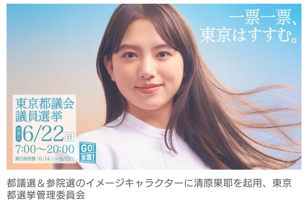 都議選&参院選のイメージキャラクターに女優・清原果耶を起用 東京都選挙管理委員会