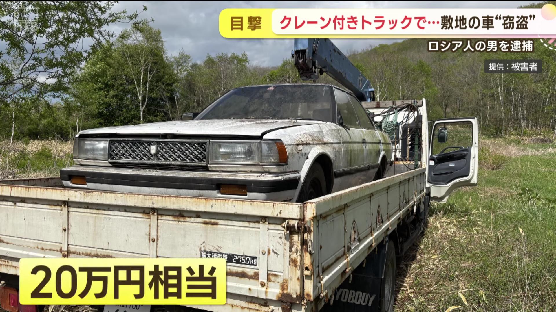 北海道の鶴居村でクレーン付きトラックに乗用車を積んで盗んだ疑いでロシア国籍の男が逮捕されました。被害者の男性が犯行の瞬間を目撃していました。