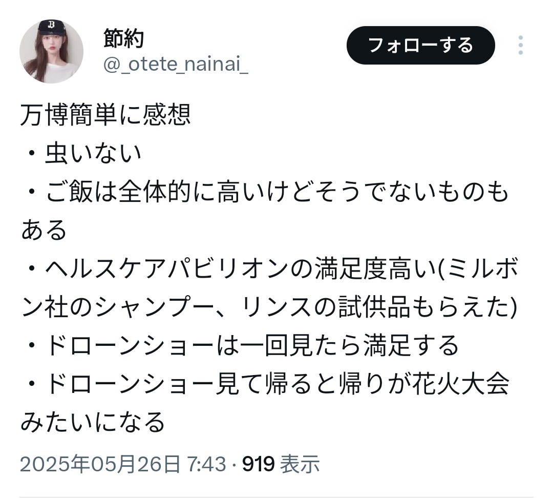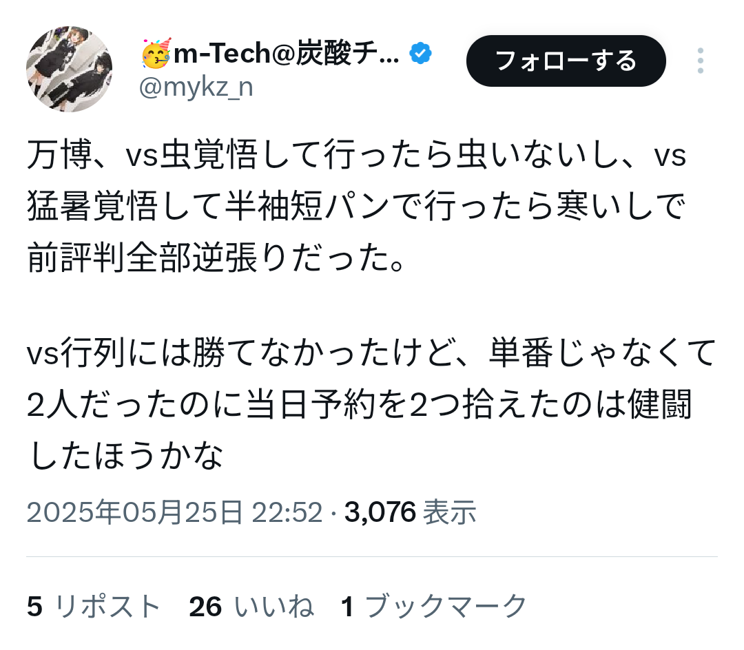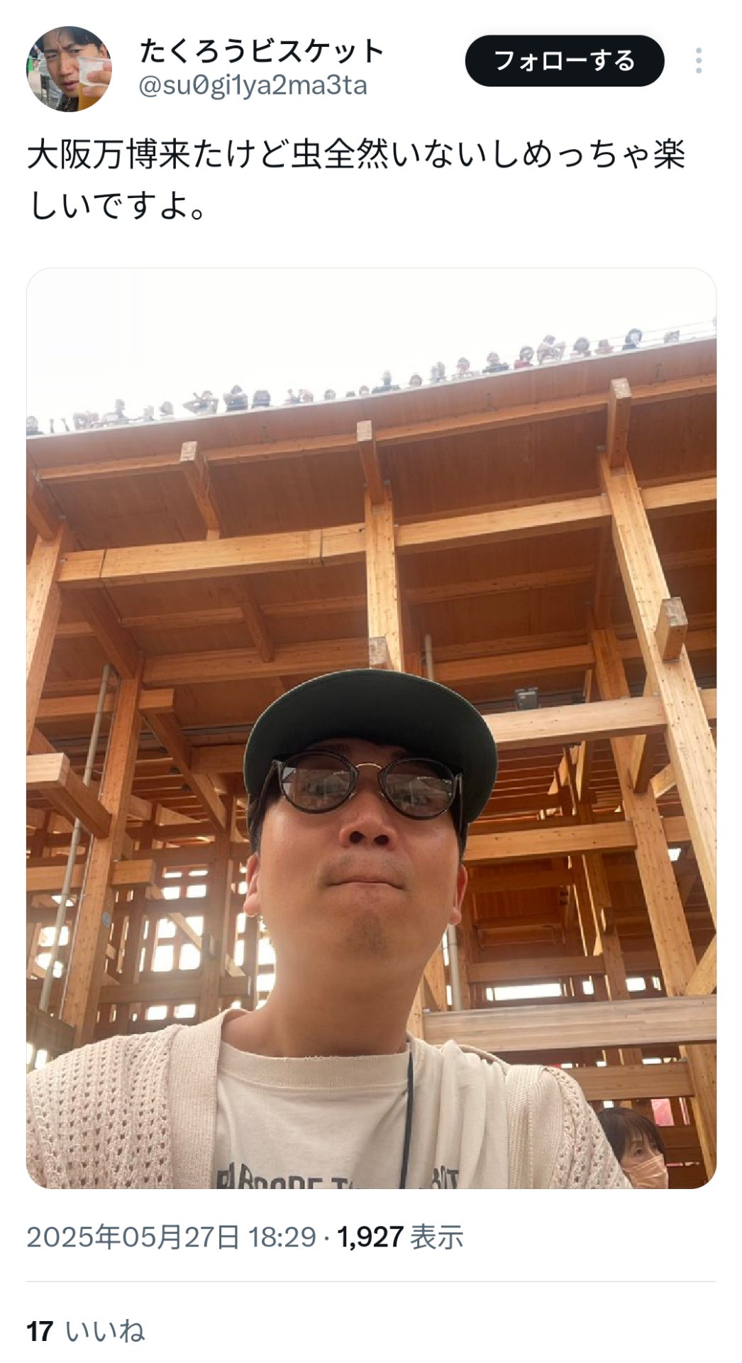 探したら居るかもしれんけど。ちなみに、フランスパビリオン辺りまで歩いてきての感想。 - 29 名前:一般よりも上級の名無しさん 投稿日時:2025/05/28(水) 18:24:45.84 ID:8IFA250Vd