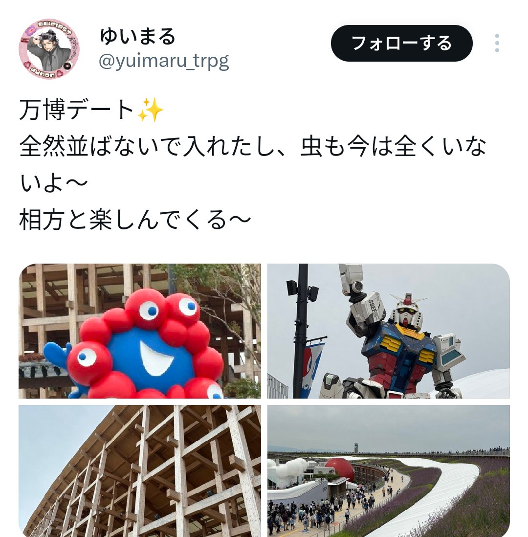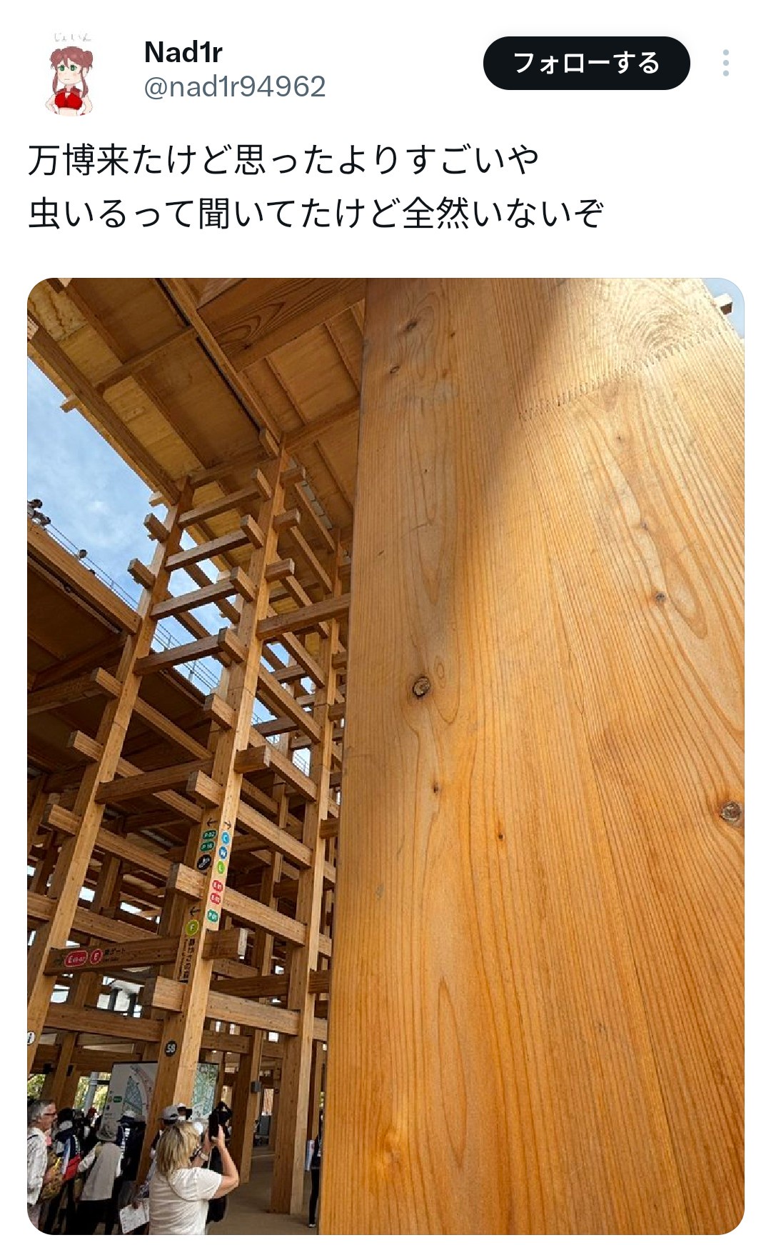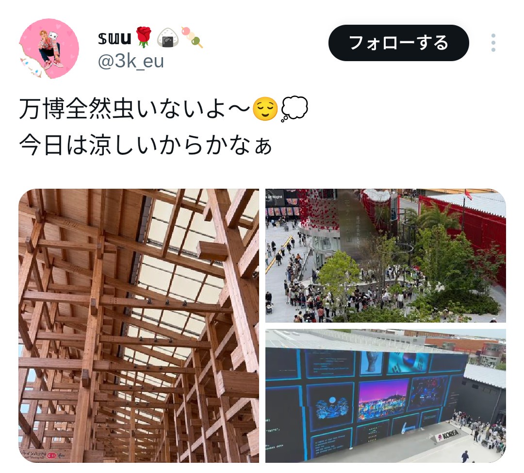 維新大嫌いやし、カジノ反対やけど、今日、万博に来てるけど虫1匹もおらんよ。