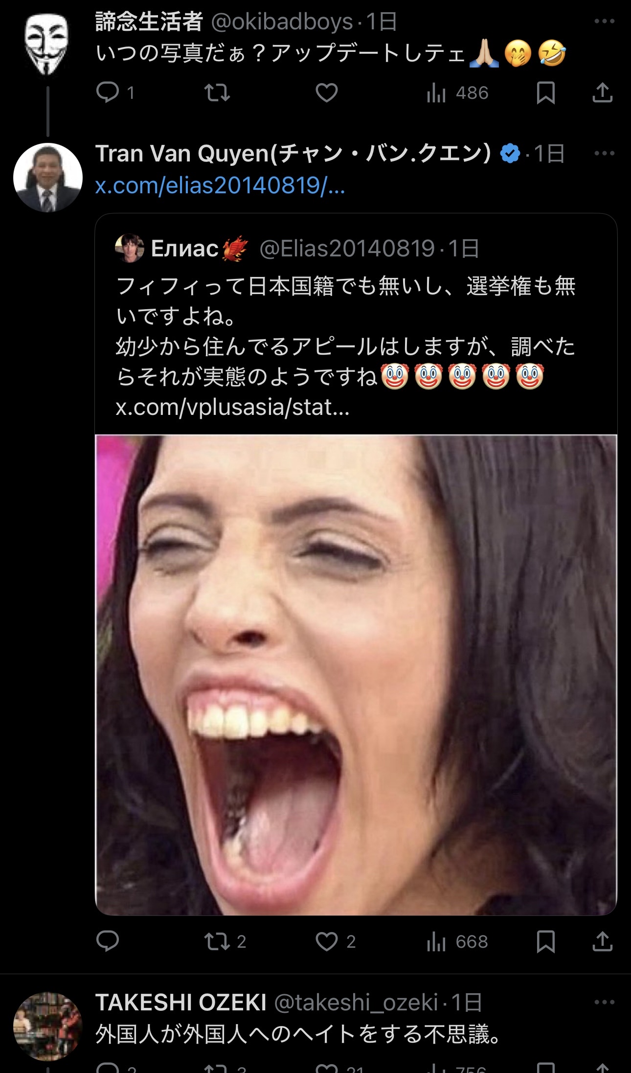 言っちゃ悪いがフィフィより犯罪者化してるベトナム人のほうが迷惑なんだよね