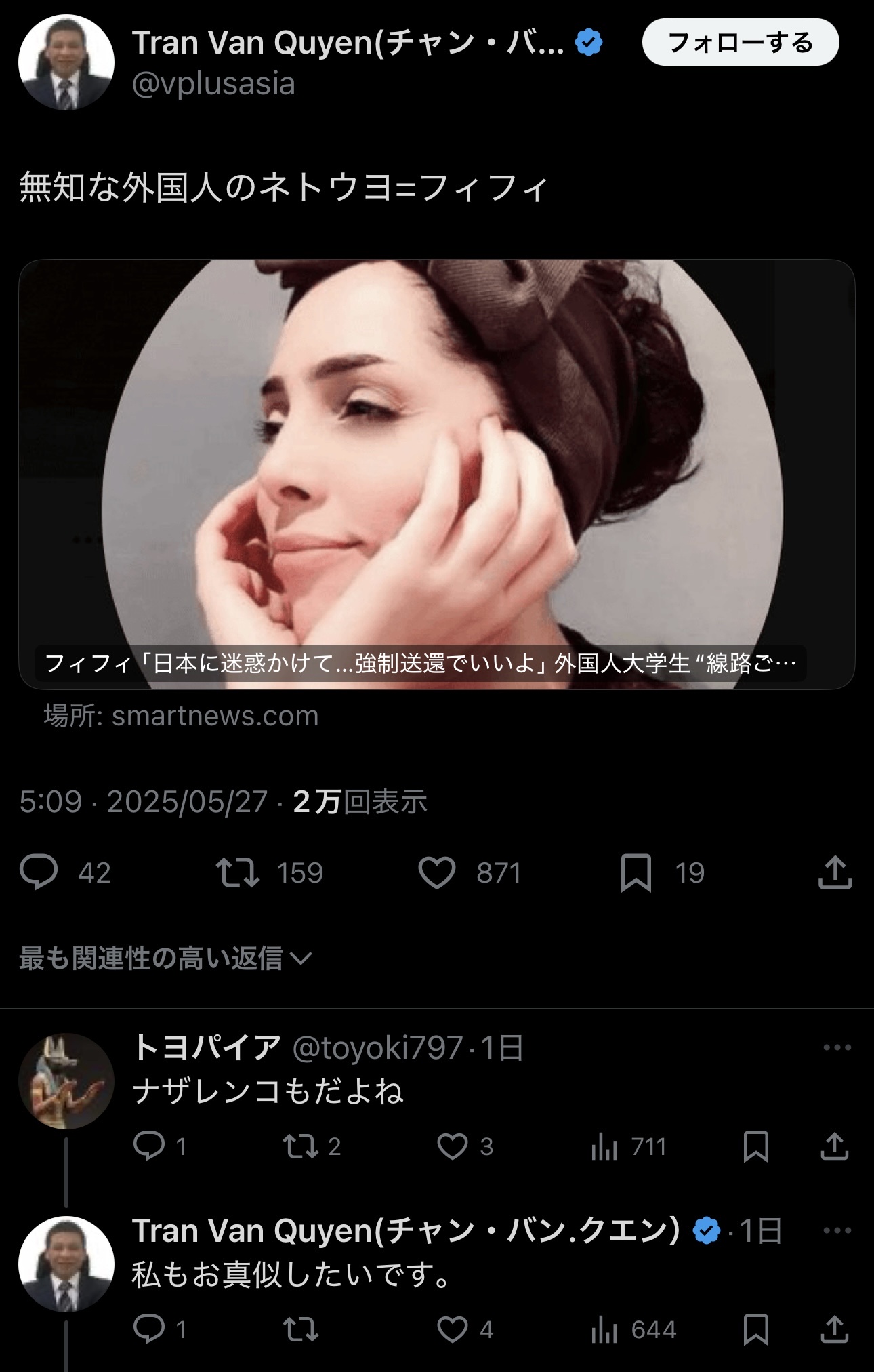 という事はこのベトナム人が実在しているならパヨちゃんか