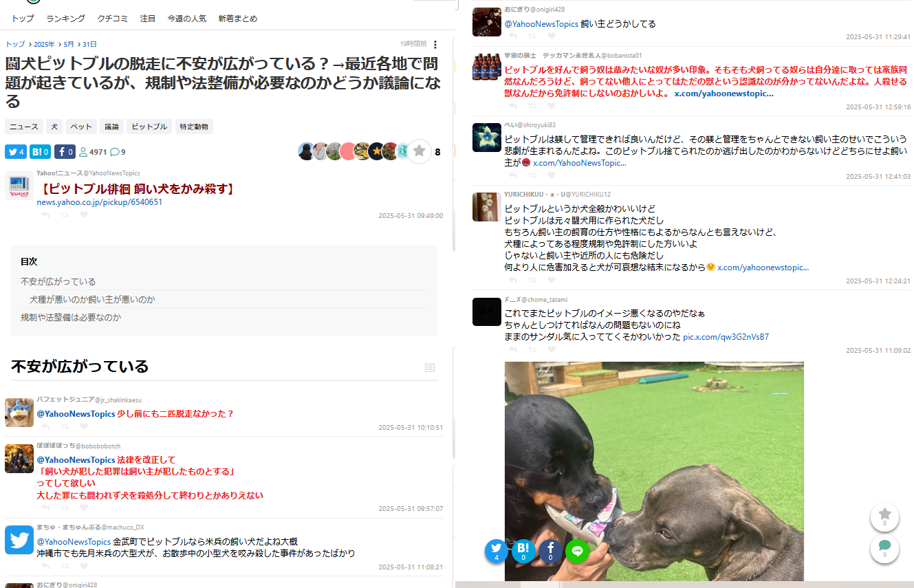 ピットブルが飼い犬をかみ殺し、日本人怒る😡「飼い犬が犯した犯罪は飼い主が犯したものとするべき😤」