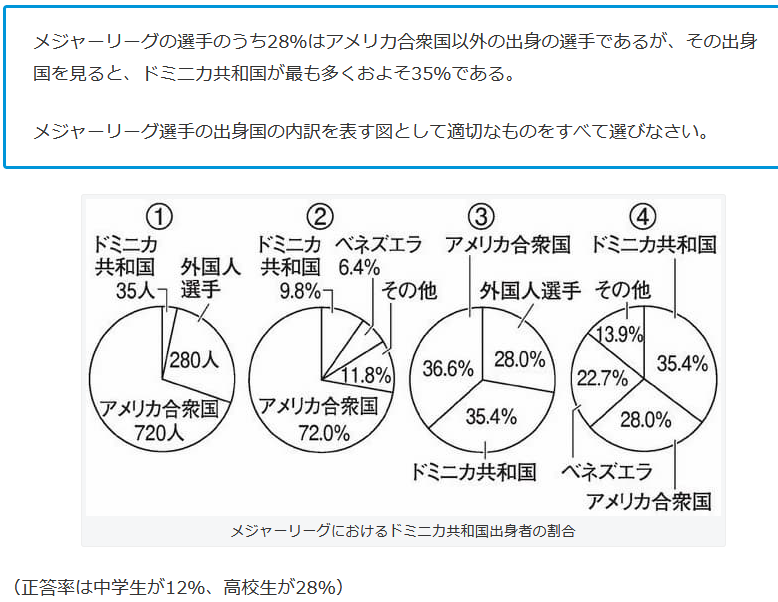 まずアメリカ72%に思い至ればパッと見で1と2に絞れる
