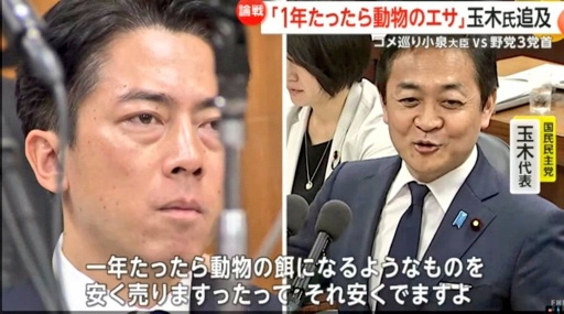 玉木に「家畜のエサ」と言われた小泉進次郎、人殺しの目になってしまう。😰