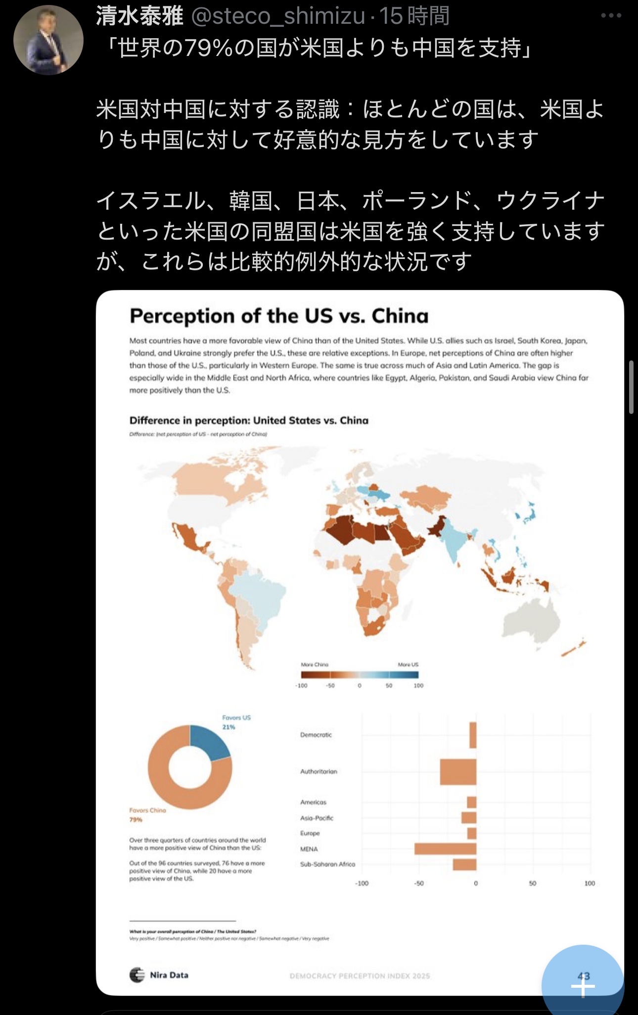 もちろん近隣諸国とはバチバチながら、アフリカとか遠い国からすると恩恵しかないような状態 - 38 名前:一般よりも上級の名無しさん 投稿日時:2025/06/05(木) 09:09:28.05 ID:WnF9N8fS0