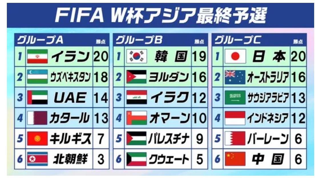 市場がデカい中国のために出場枠増やしたのにヨルダン出れて中国出れないとかw