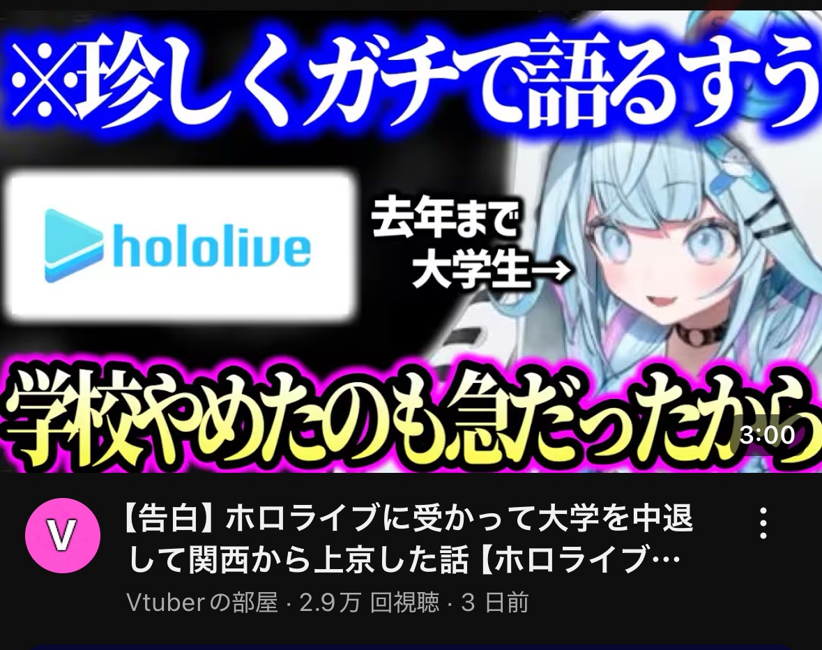 ホロライブ「女子大生辞めさせてVtuberにさせた。女に学問の追求やキャリア形成など無意味。」