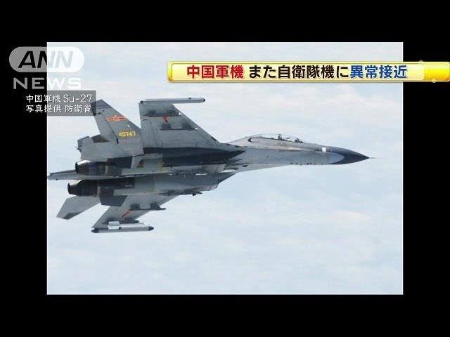 中国さん。自衛隊の哨戒機に向けて、空母から戦闘機発進させ 45mまで超接近。挨拶する