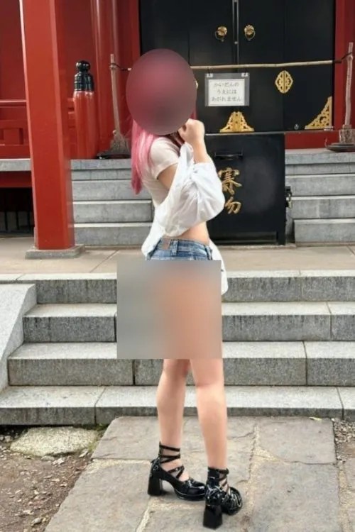 浅草寺で撮影した「人前露出」写真、おぱーい太ももと臀部が完全に露わになるほどの短い丈のショートパンツ台湾の観光客が物議に😲