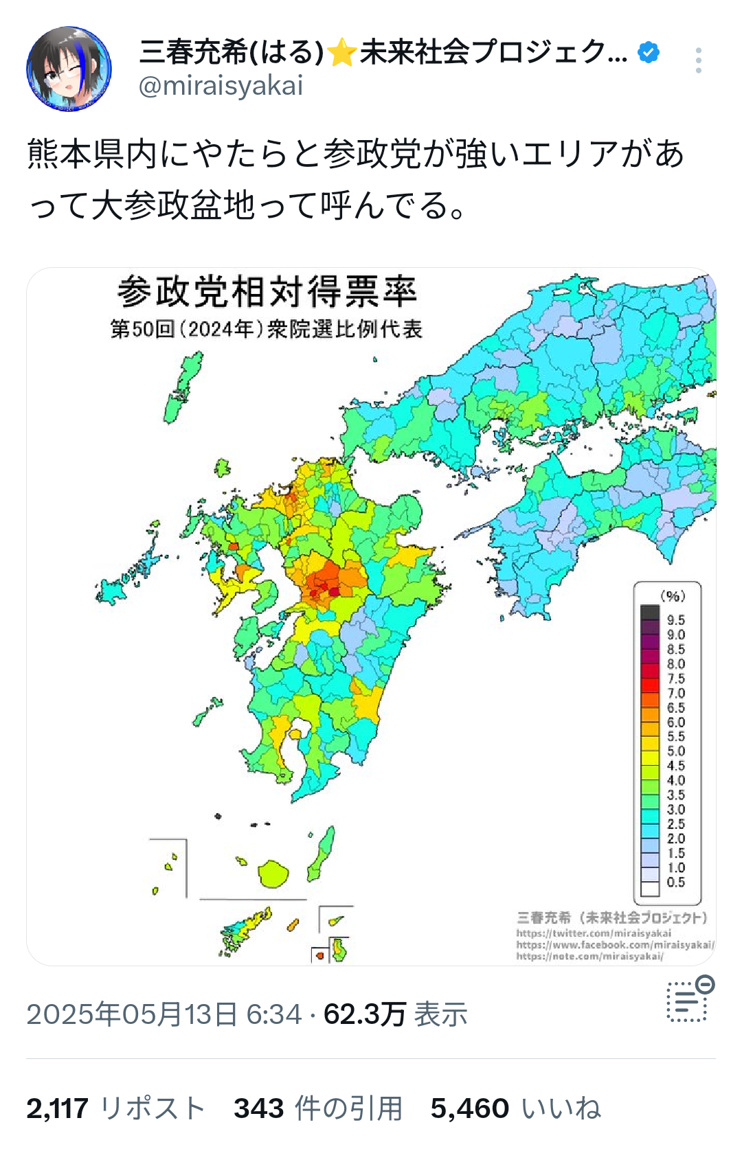選挙ガチ勢「熊本に局所的に参政党がめちゃくちゃ強いエリアがあるんだが…」