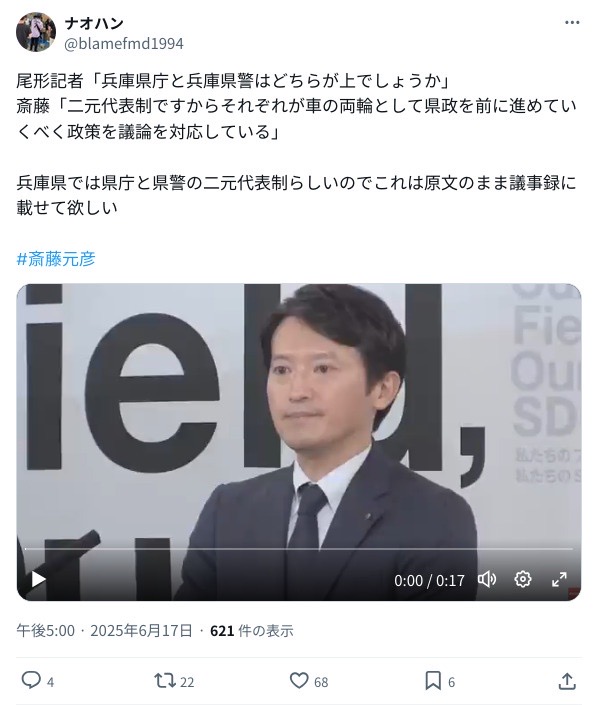 県警と議会を聞き間違いか勘違いやろ、さすがに
