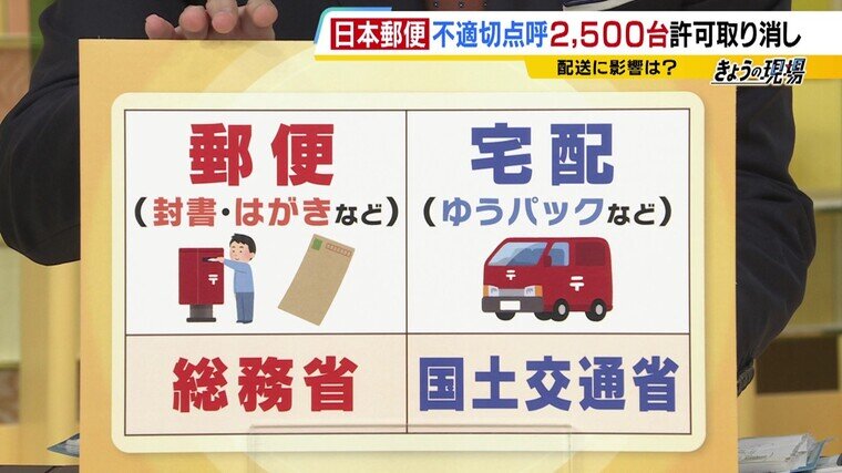 ――日本郵便の事業は、一般的な封書・はがきは総務省の管轄で、宅配(ゆうパックなど)は国土交通省の管轄です。