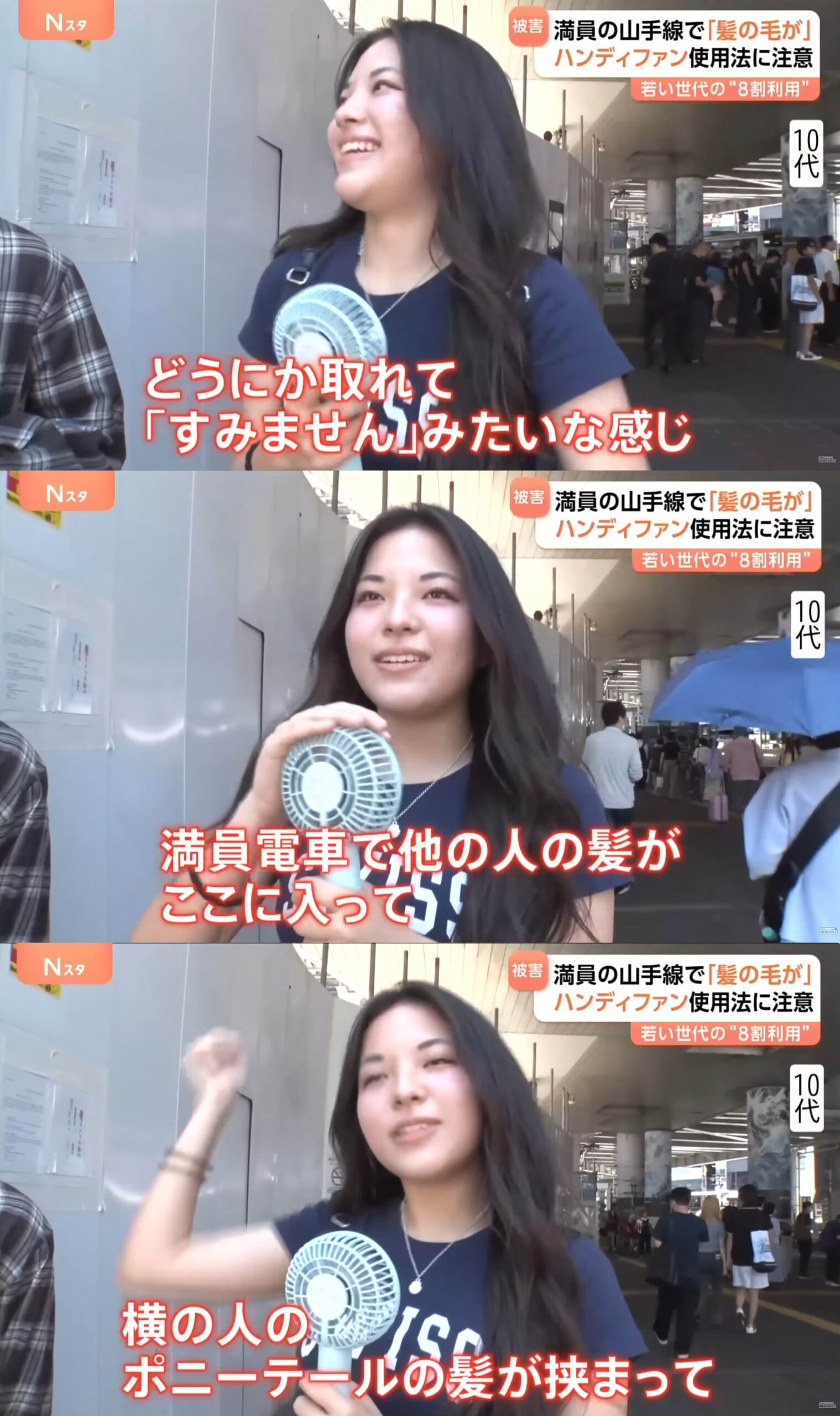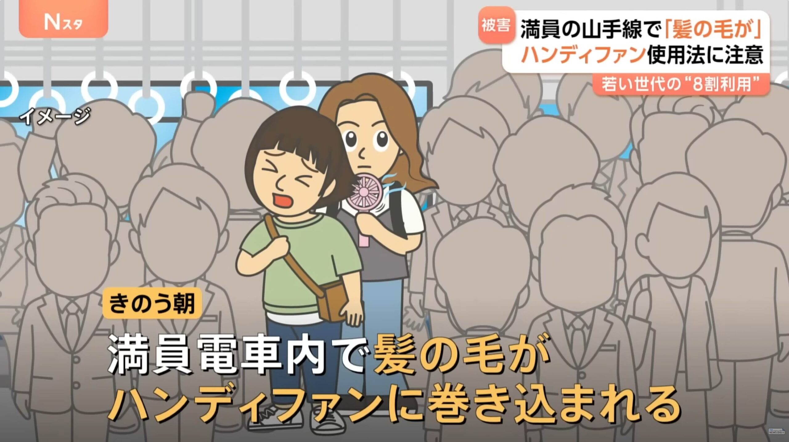夏の定番ハンディファンの使い方に注意!自分の髪だけじゃない!満員電車で他人の髪を巻き込むことも!?|TBS NEWS DIG