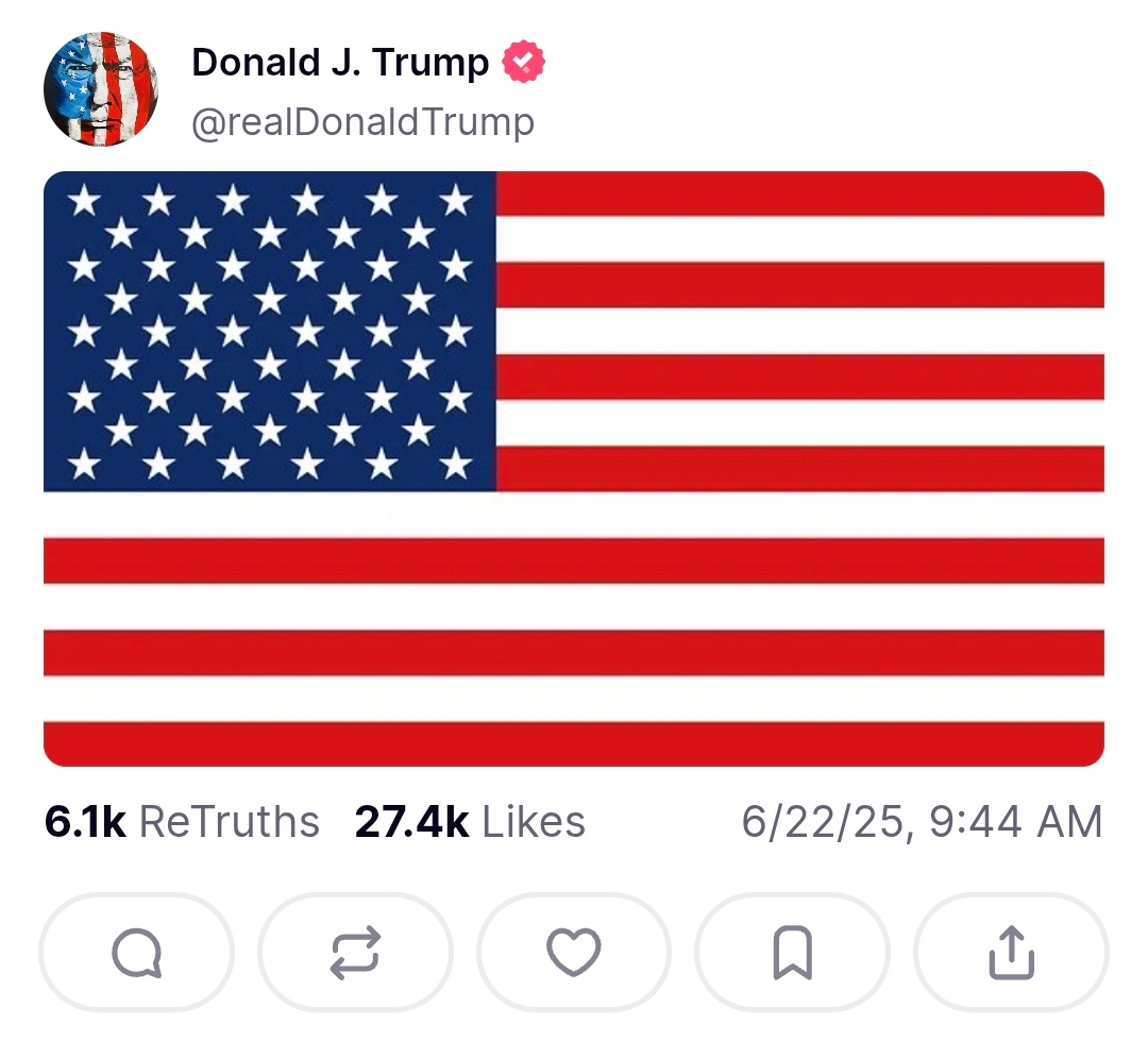 トランプおやびん、このタイミングで自身のSNSに星条旗の画像を投稿 うおおおおおおUSA!USA!