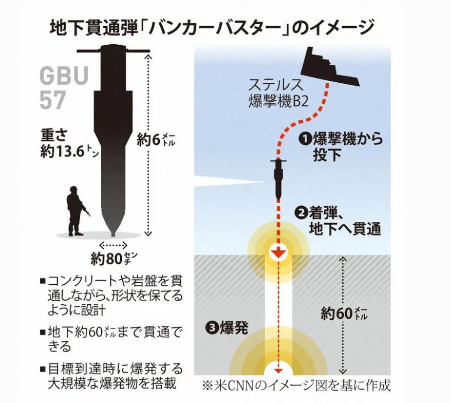 ましてやこれは核施設でその80m下も通常よりもさらに分厚いコンクリで守られてることは容易に想像できるわけでそれで20mも届かなかったら破壊は難しいだろ - 16 名前:一般よりも上級の名無しさん 投稿日時:2025/06/22(日) 11:03:55.88 ID:Be8jbxba0