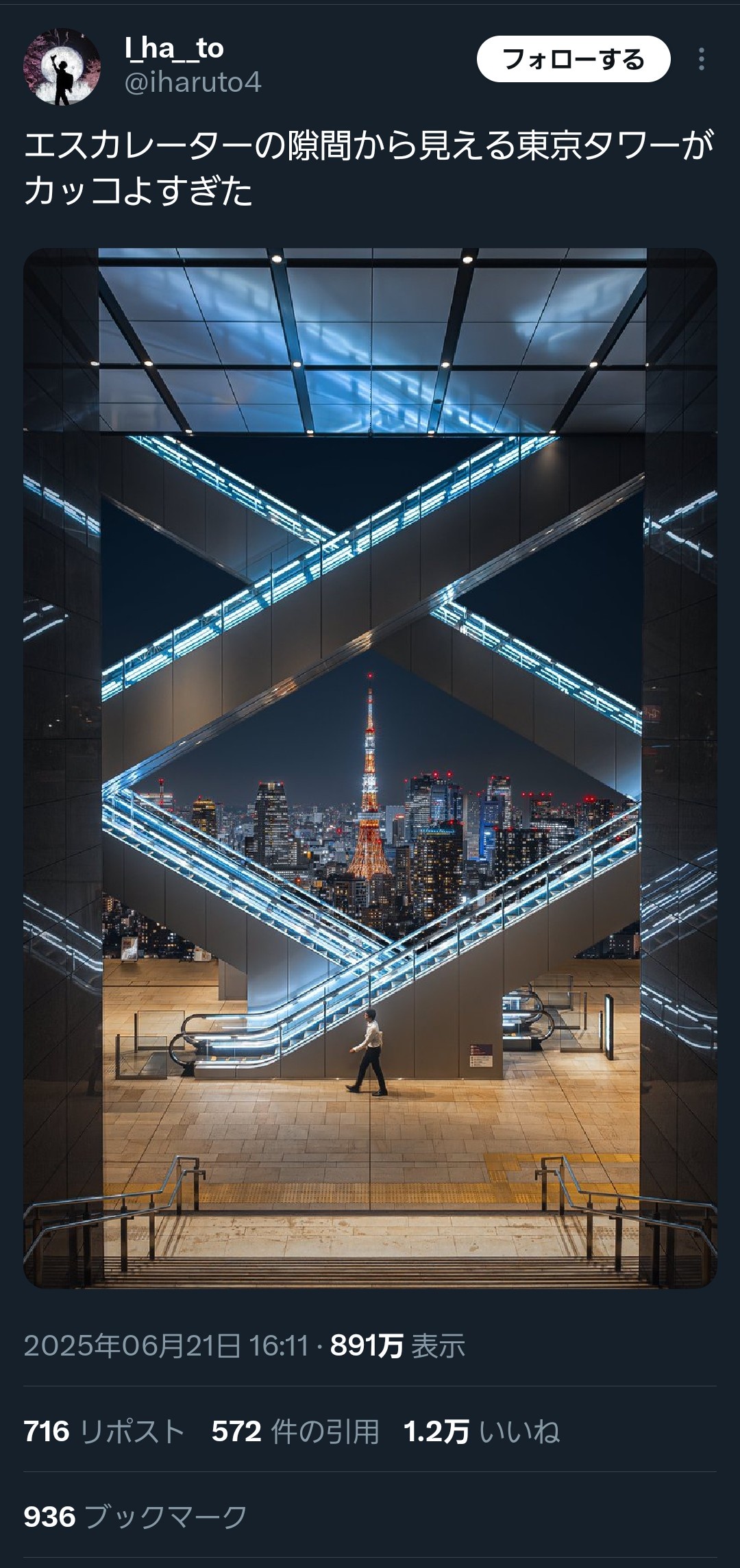 エスカレーターの主張が強すぎて、主役のタワーを喰ってしまっている