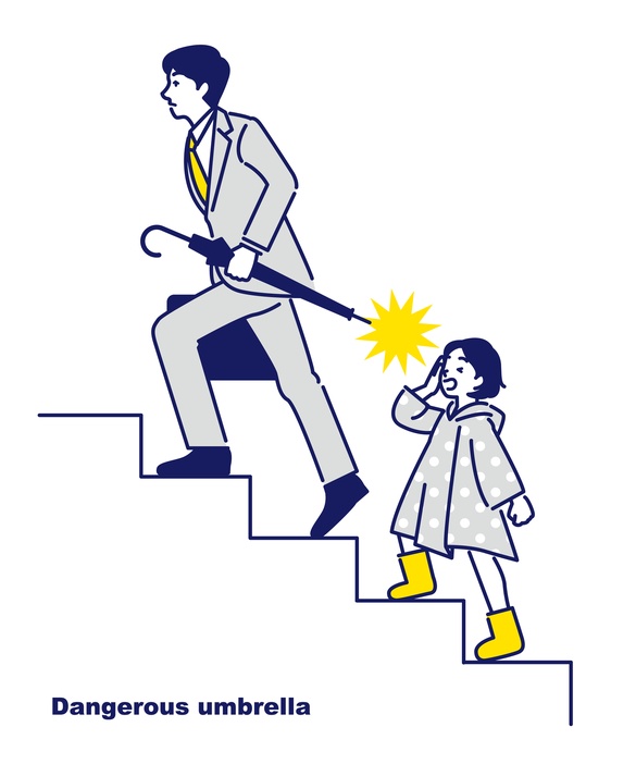 雨の日「傘」横持ちがもたらす危険性 後方の子どもの顔に…東京都生活文化局消費生活部が“注意喚起”