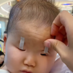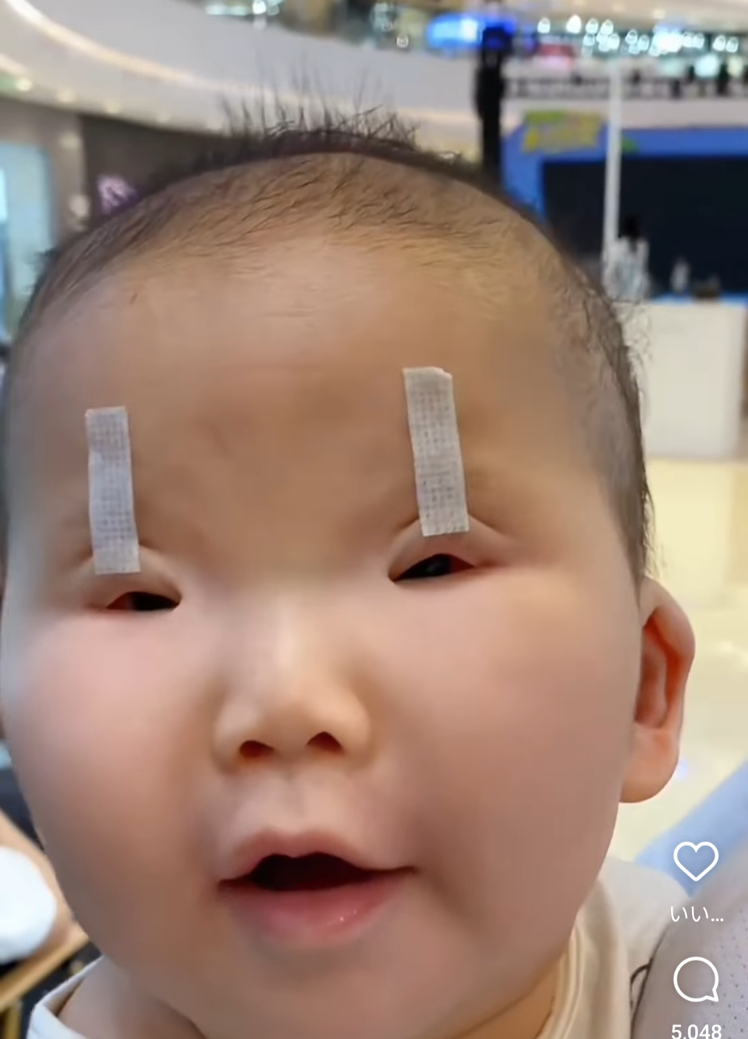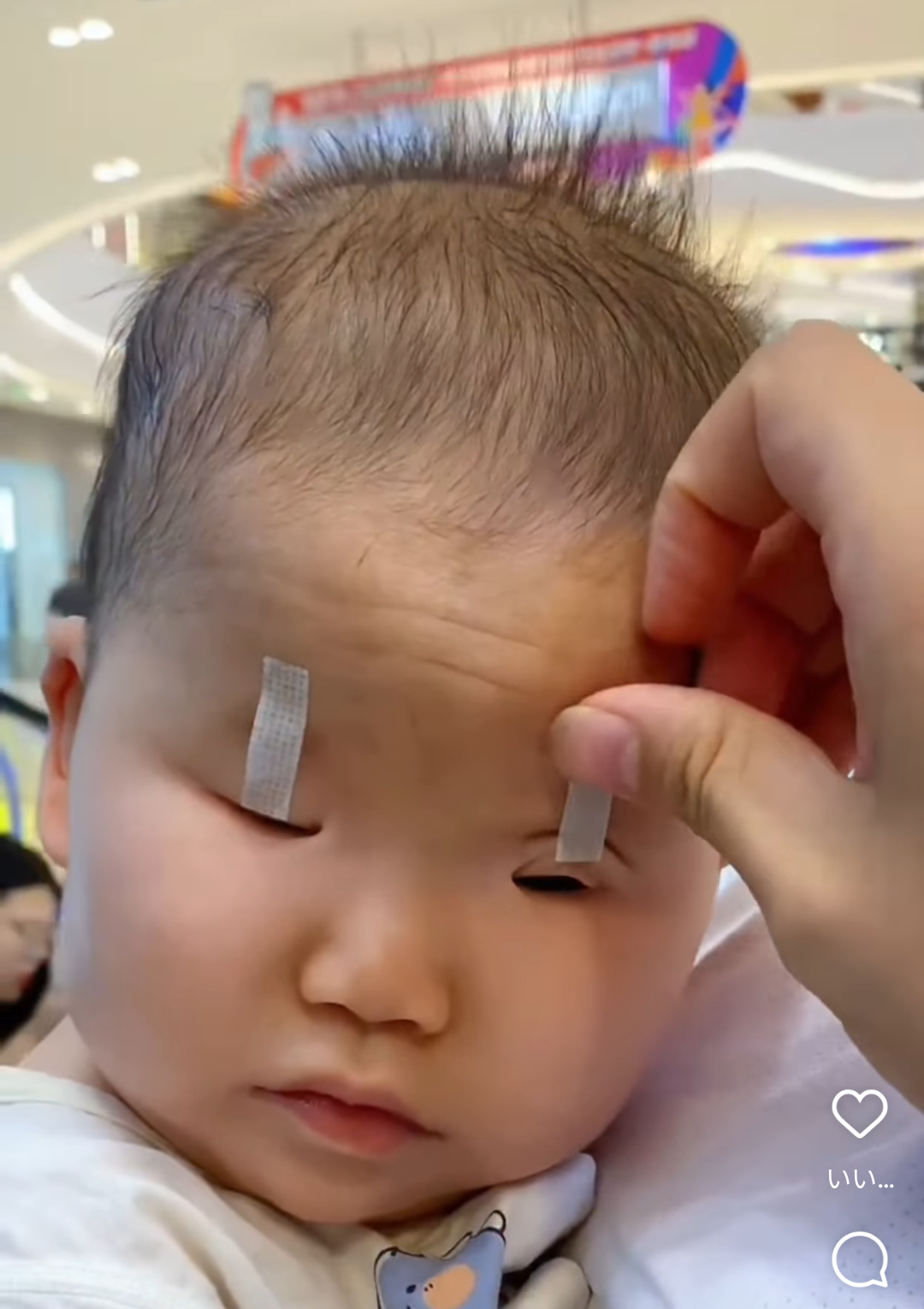 サンタさんを見るために目にテープ貼ってる子どもみたいやな