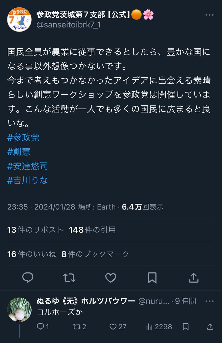 参政党の支持者だけでコルホーズやってりゃいいんじゃね